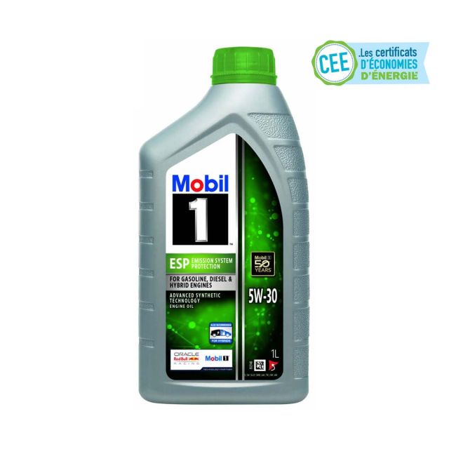 La Nouvelle Huile Moteur Mobil 1 ESP 5W30, est une huile entièrement synthétique conçue pour les moteurs essence et diesel d'une large gamme de voitures de tourisme, utilitaires et camions légers. Elles est formulée pour les voitures modernes à essence , diesel et hybrides à haut rendement Porsche, BMW, Volkswagen, Opel et Mercedes Benz, ainsi que pour les véhicules japonais et coréens qui exigent spécifiquement un indice de viscosité 5W30. C'est également une huile à faible teneur en cendres (mid SAPS) qui contribue à protéger les systèmes de post-traitement des gaz d'échappement.